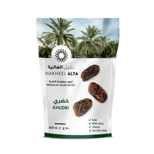 يتميز تمر الخضري بجودته وقيمته الغذائية، مناسب لمرضى السكري لنسبة السكر القليلة فيه. معبأ في كيس جميل ورائع وخفيف الوزن لتقدم هدية من المدينة المنورة لأحبائك في كل مكان
