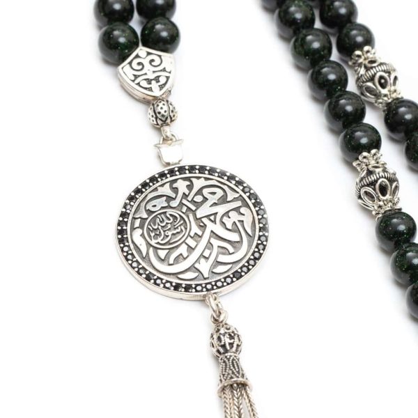Handmade asterism stone prayer bead, inspired by prophet’s mosque ornaments. The charm is topped with zircon. The bottom of the charm is made of sterling silver. A great gift for your loved ones.